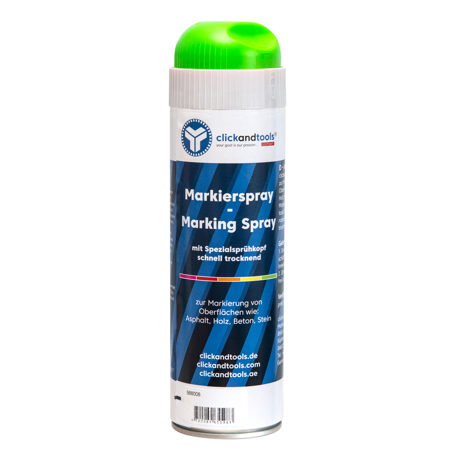 Markierungsspray leuchtend grün clickandtools® mit Spezialsprühkopf, schnell trocknend